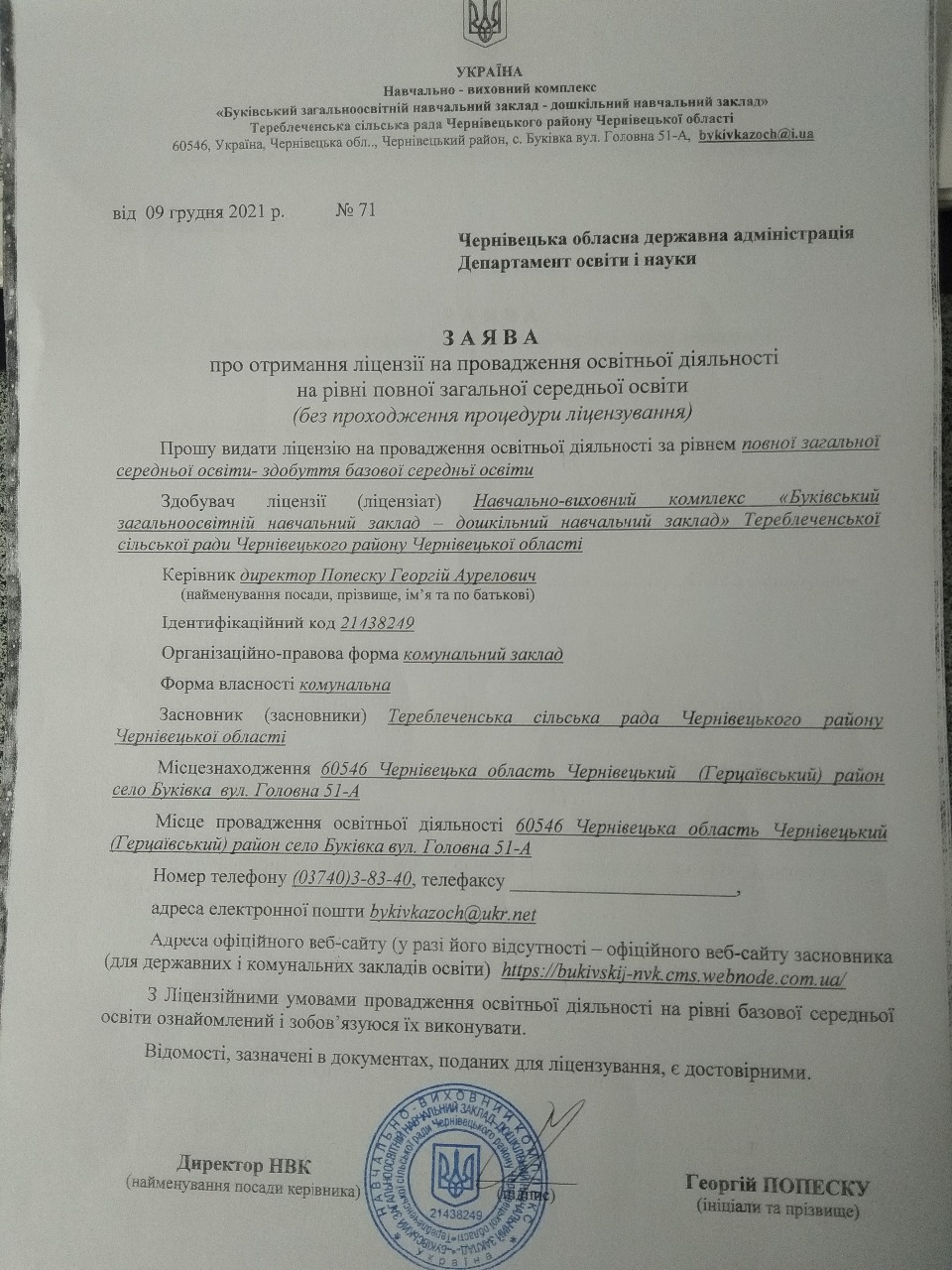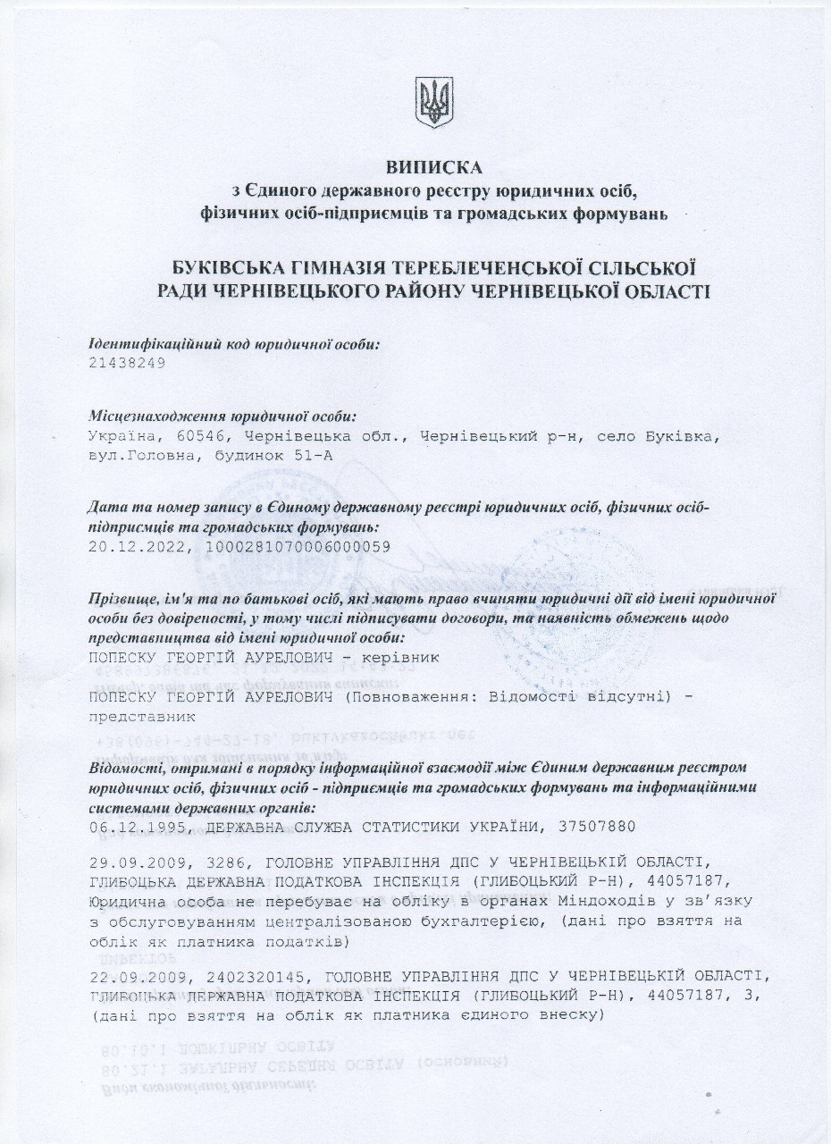 60546, Чернівецька область, Чернівецький район, с. Буківка, вул. Головна,51-А